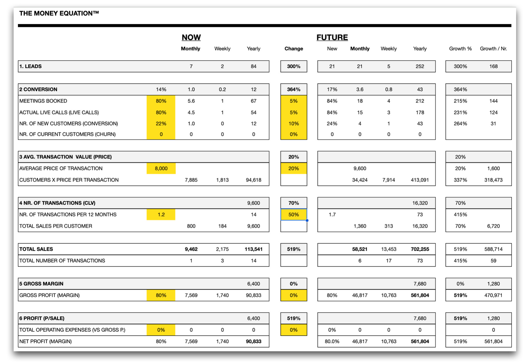 Use The Money Equation to identify the 6 revenue/profit levers.