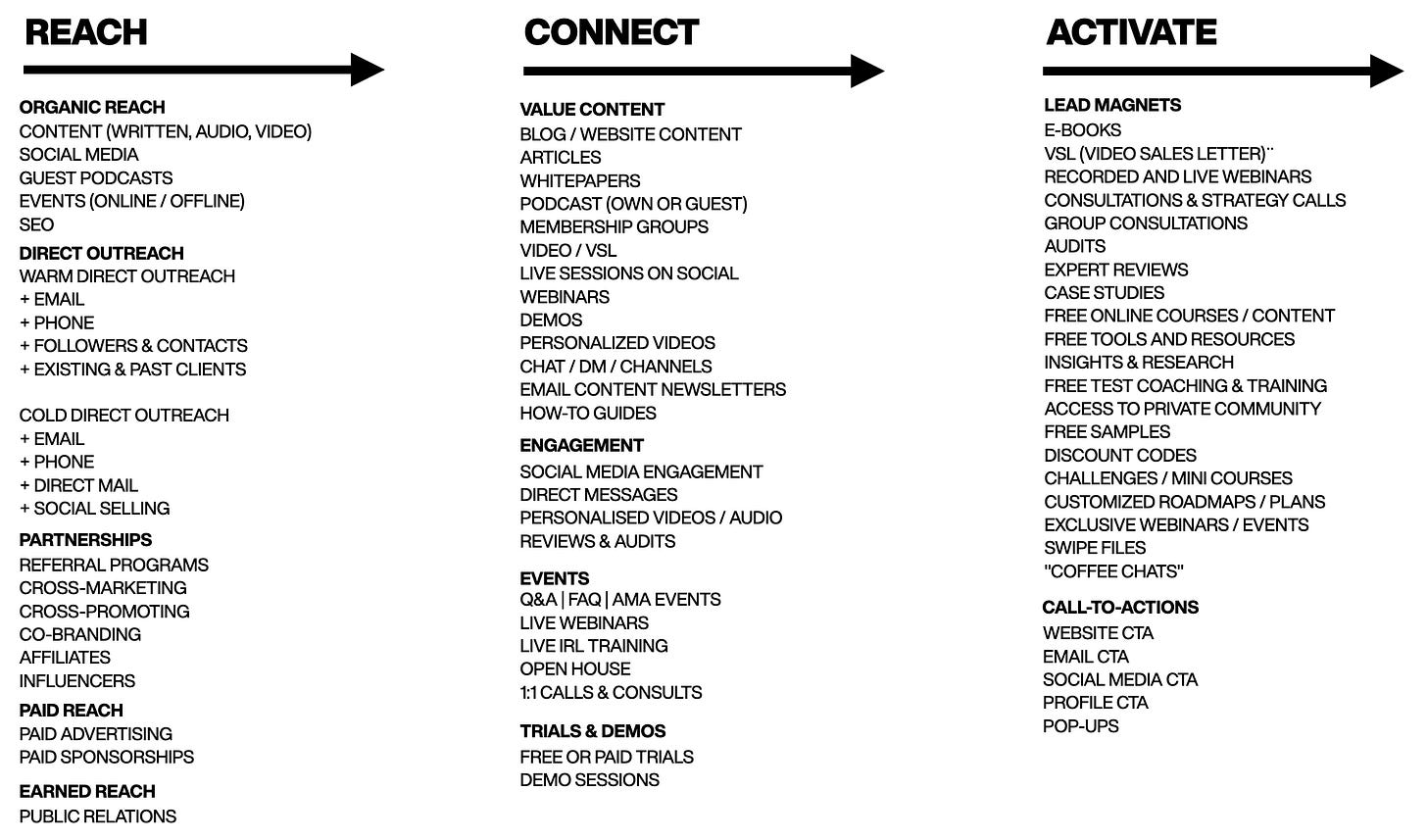 For example, if you need 10 meetings per month to close 3 sales, you need a concrete, predictable, repeatable way of getting those meetings. Etc.